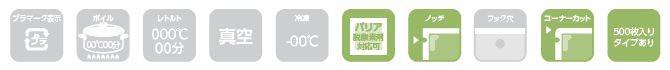 | 加工 | 頭シール20mm、コーナーカット、ノッチ付き |