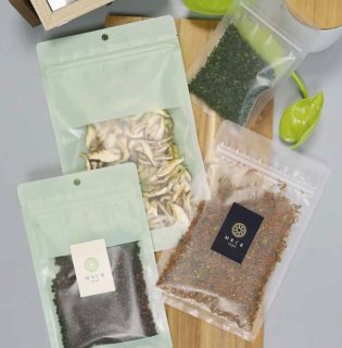 焼菓子、珍味、ナッツ類、ドライフルーツ、ふりかけ、その他粉末食品等にご使用頂けます。