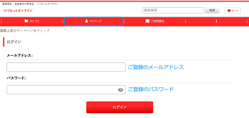 ご登録のメールアドレスとパスワードを入力してログインをクリック