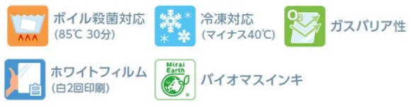 ボイル殺菌(85℃ 30分)および-40℃の冷凍に対応しています。
