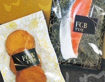 ナイロンフィルムの片面に金色の菊柄模様を印刷をし、中の商品をより豪華に見せてくれます。