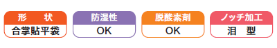 材質構成:レーヨン紙18g/LDPE15/KOP20/LDPE15/LLDPE25