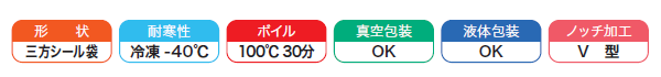 -40℃の冷凍食品包装から、100℃×30分の高温ボイル殺菌まで幅広く対応できます。