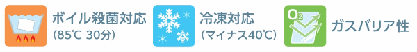 ボイル殺菌(85℃ 30分)および-40℃の冷凍に対応しています。