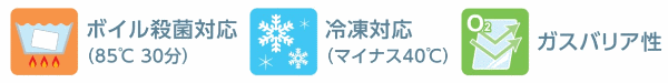ボイル殺菌(85℃ 30分)および-40℃の冷凍に対応しています。