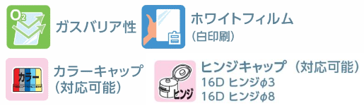 | 仕様 | コーナーカット4か所、5mmサイドシール、口内径16mm |