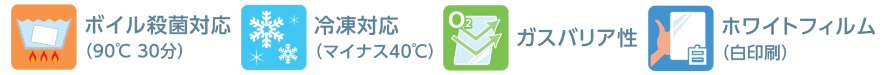 ボイル殺菌(90℃ 30分)および-40℃の冷凍に対応しています。