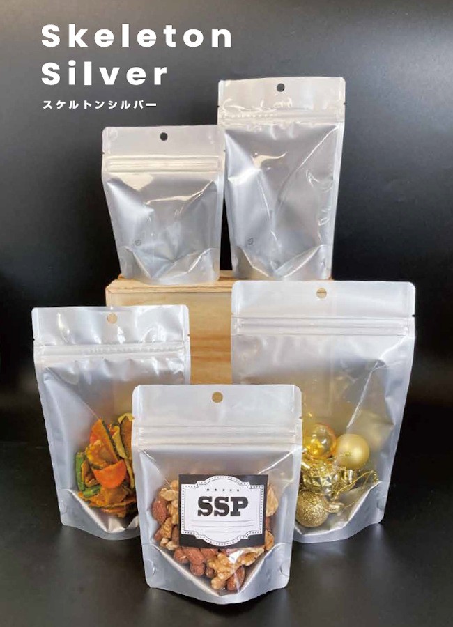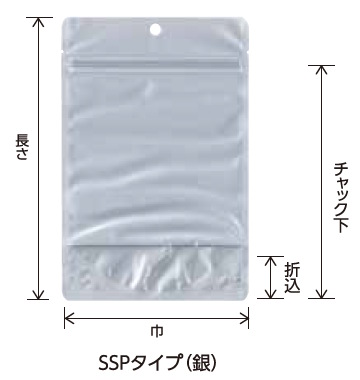 | 製品名 | バリアー性 フック穴・チャック付き スケルトンシルバー スタンドパック SSPJ-1 |