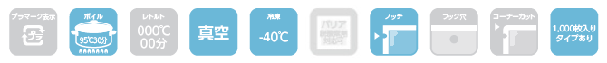 | 製品名 | 真空パック・ボイル用(95℃30分)三方袋 NXP-33 |