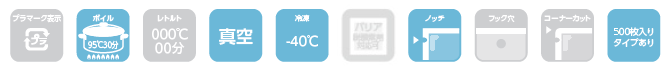 -40℃の冷凍から95℃30分のボイル殺菌が可能です。
