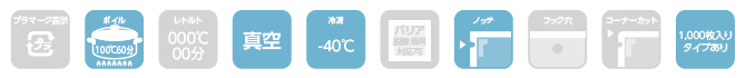 -40℃の冷凍から100℃60分のボイル殺菌が可能です。