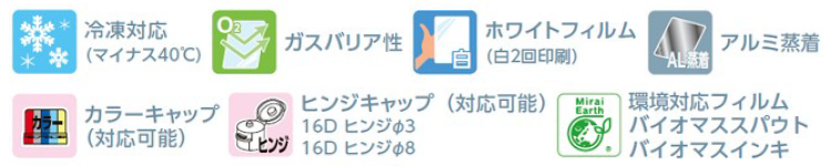 | 仕様 | コーナーカット4か所、5mmサイドシール、口内径16mm |