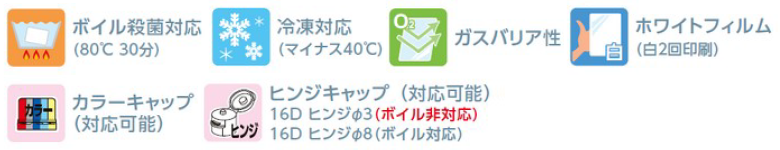 ボイル殺菌(80℃ 30分)および-40℃の冷凍に対応しています。