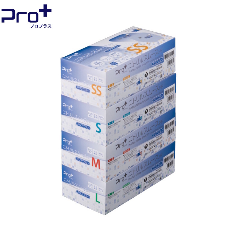 プロプラス ニトリルスムースPF (粉なし・アクアブルー) 宇都宮製作 1ケース2,000枚 (200枚×10箱)入り ※個人宅配送不可